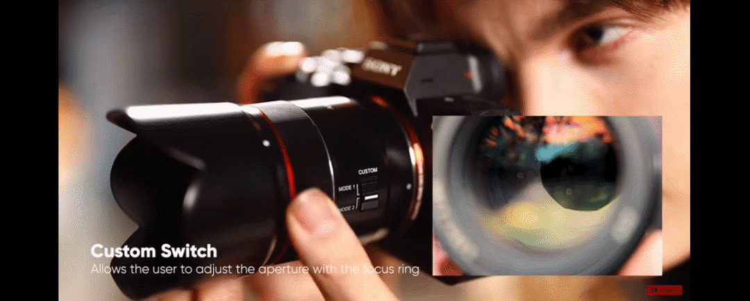 A new notable feature is the addition of a Custom Switch. The Custom Switch enables the focusing ring to function either as a manual focus control (Mode 1) or as an aperture control (Mode 2). Additional custom switch functions are being developed that can be added via firmware updates. Updates as well as fine tuning focusing parameters can be achieved on the AF 75mm F1.8 and other AF ROKINON Sony E mount lenses via the accessory ROKINON Lens Station model IOLS-E.