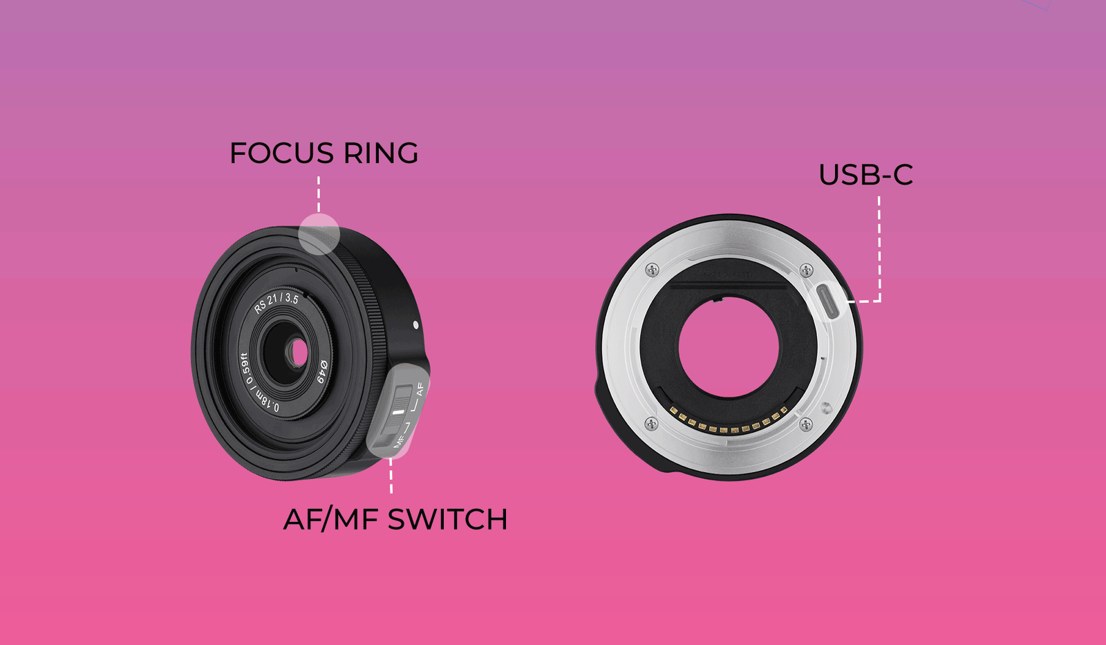 The AF/MF switch on the RS AF Module allows you to alternate between auto-focus and manual focus modes, and also includes a compact focusing ring for precise adjustments. With a built-in USB-C port, firmware updates are quick and simple, always keeping your lens up to date.