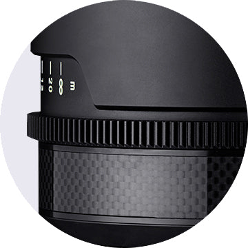 By applying carbon fiber, which is lighter than metal but solid and beautiful, to the lens body tube, it remains lightweight while maintaining durability.