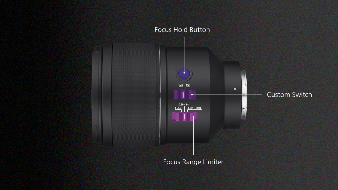 The AF 135mm F1.8 E features 3 different customized buttons such as Focus Hold Button, Custom Switch, and Focus Range Limiter Switch to enhance usability.