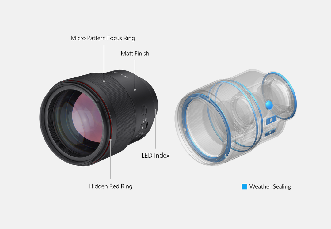 The AF 135mm F1.8 FE has been developed and enhanced, taking into consideration not only the design features but also the user's shooting environment. It has a micro-patterned rubber focus ring, which feels great to operate and the weather-sealing protects the lens from light rain, snow and dust.