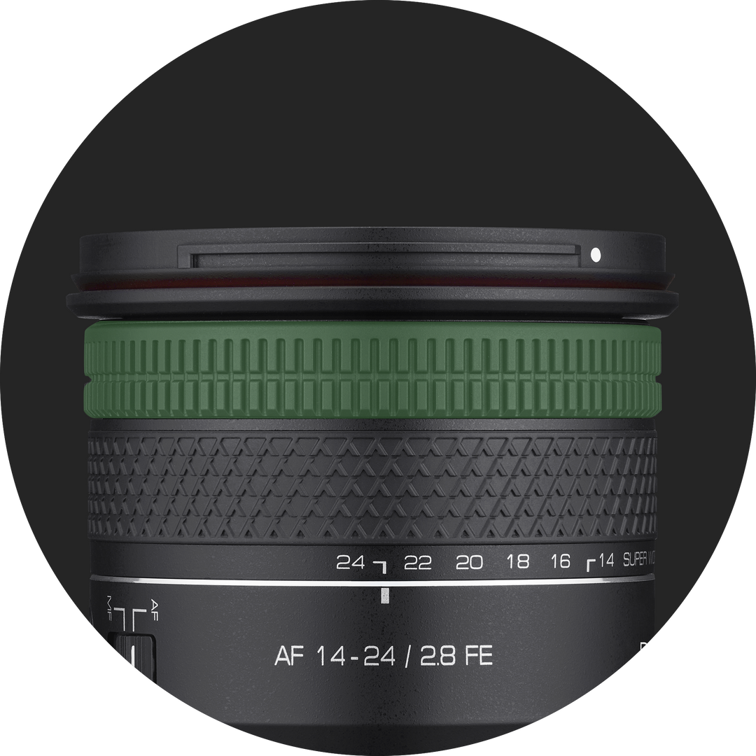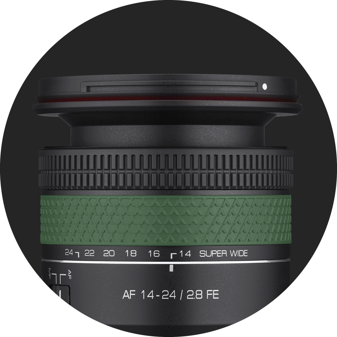Enables smooth focal length adjustment from 14mm through 24mm, offering versatile framing from ultra-wide to standard wide-angle views.