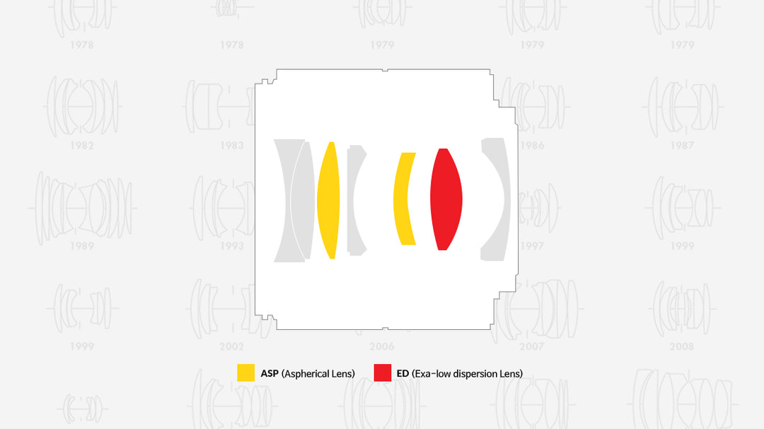 Optically, the lens is made up of 7 elements in 6 groups. Two Aspherical plus one Extra-low Dispersion element and Ultra Multi-Coating are utilized to effectively control vignetting, distortion and chromatic aberration. Additionally, the rounded nine-blade diaphragm and F1.8 bright aperture produce a pleasing out-of-focus quality when working with shallow depth of field techniques.