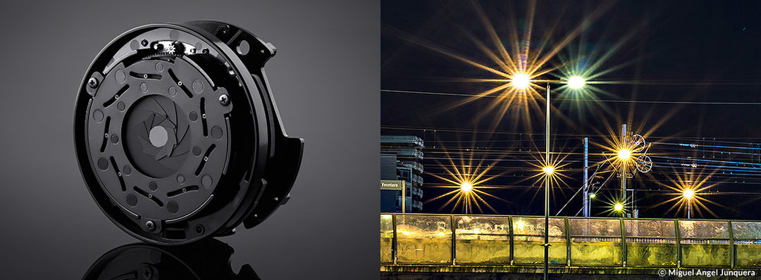 The iris mechanism uses 9 aperture blades to create brightly defined sunstars