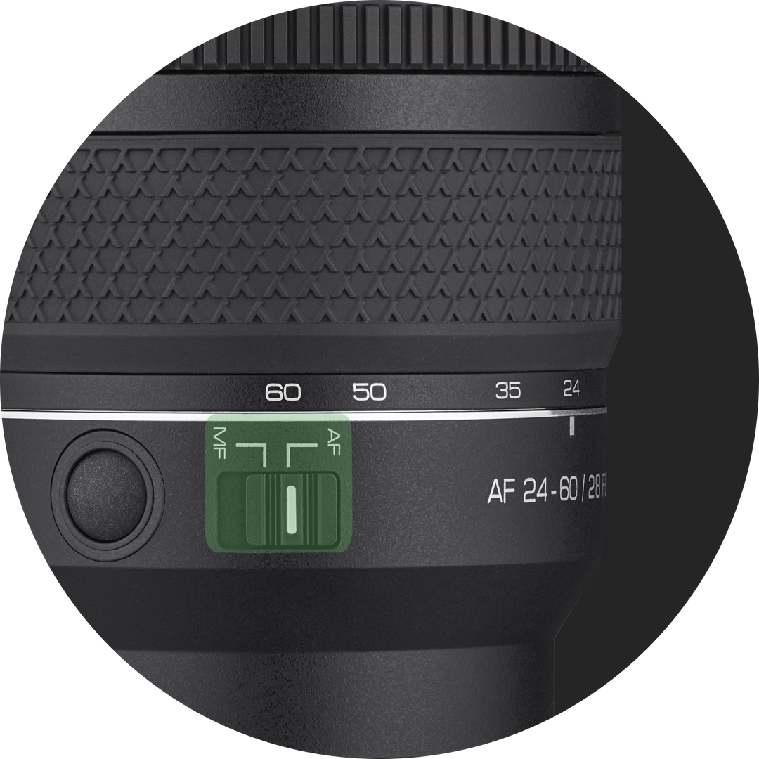 Enables smooth focal length adjustment from 24mm through 60mm, offering versatile framing from standard wide to short telephoto views.