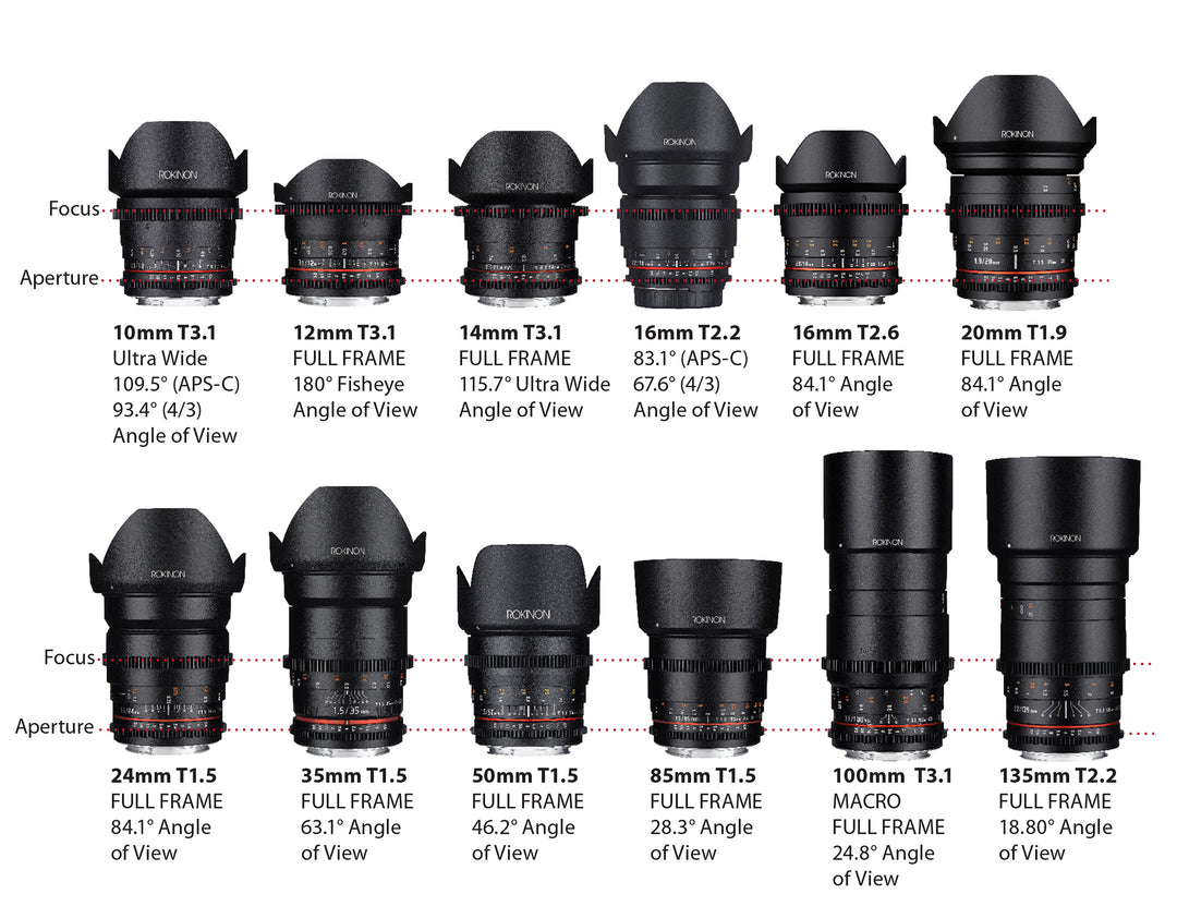 Each lens in the Rokinon DS series shares common focus and iris gear ring positions, which speeds up lens changes as accessories such as follow focus units or iris motors don't have to be re-positioned.