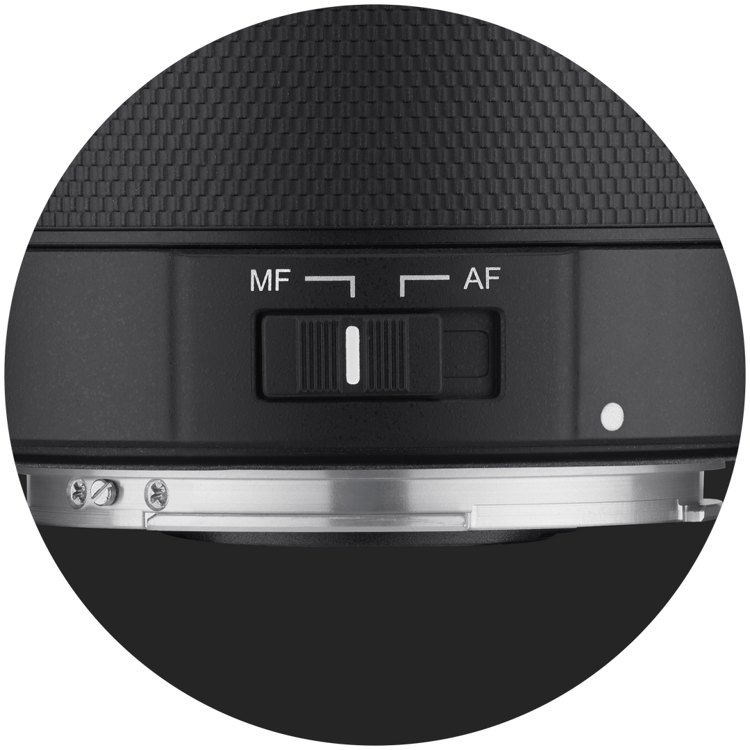 The MF/AF switch on the lens barrel allow for direct, intuitive adjustments. These features enable quick changes between manual and autofocus settings.